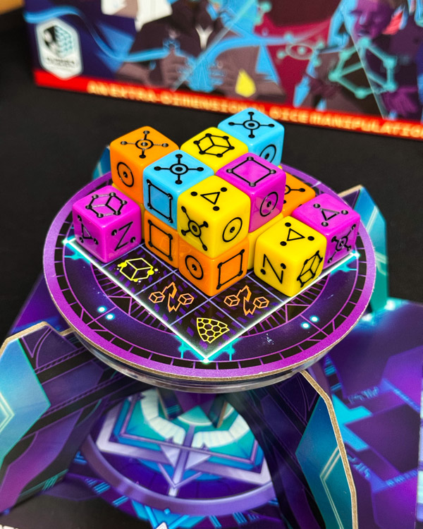 Tesseract board game box with dice cube
