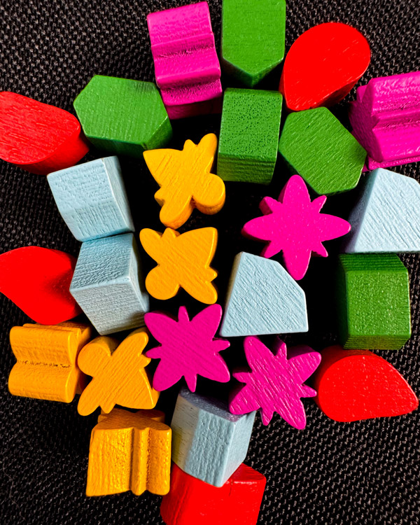 Hummingbirds fly from the hummingbird board to player boards and back to the hummingbird board throughout the game. Each one provides a little gift before it flutters away